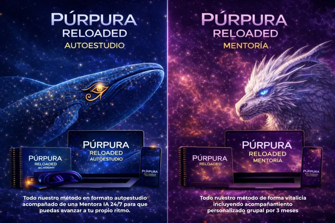 Hasta ahora, acceder a esta Mentoría con acompañamiento requería una inversión de +$1.000 USD, pero en este momento puedes acceder a esta nueva versión: Mentoría Púrpura Reloaded solo por $333 o $540 dólares en tu moneda local: pesos, euros, soles etc.